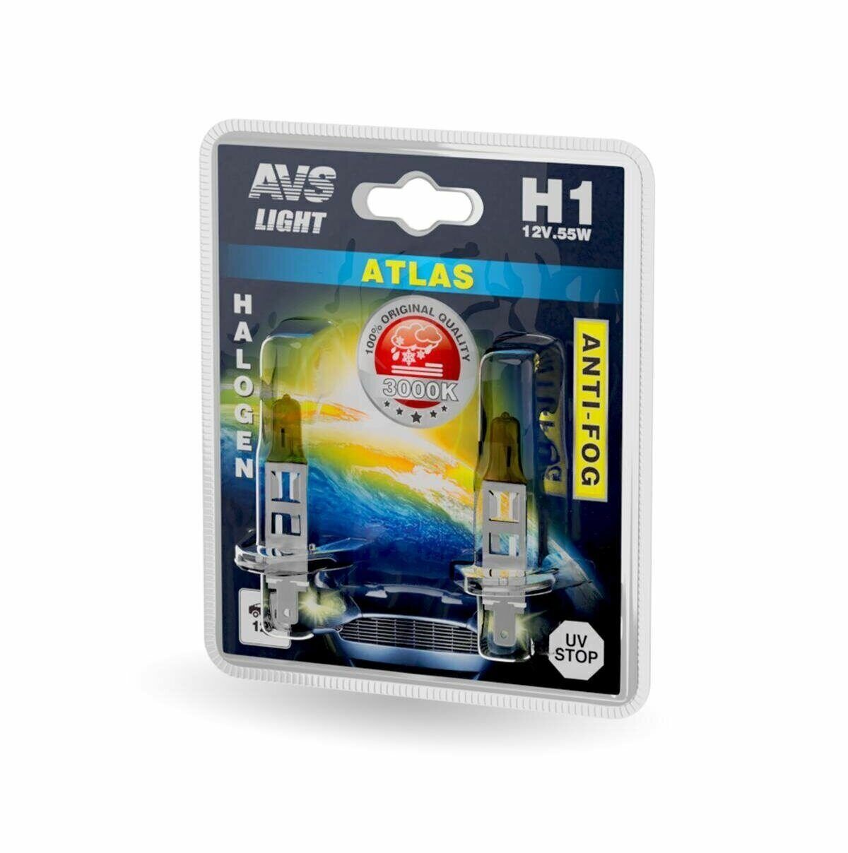 Лампа галогенная H1 12V 55W "AVS" Atlas (ANTI-FOG/желтый ) (2 шт.)