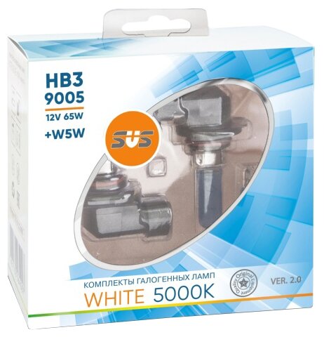 Лампа автомобильная галогенная SVS White 5000K 12V HB3/9005 65W+W5W VER.2.0 2 шт.