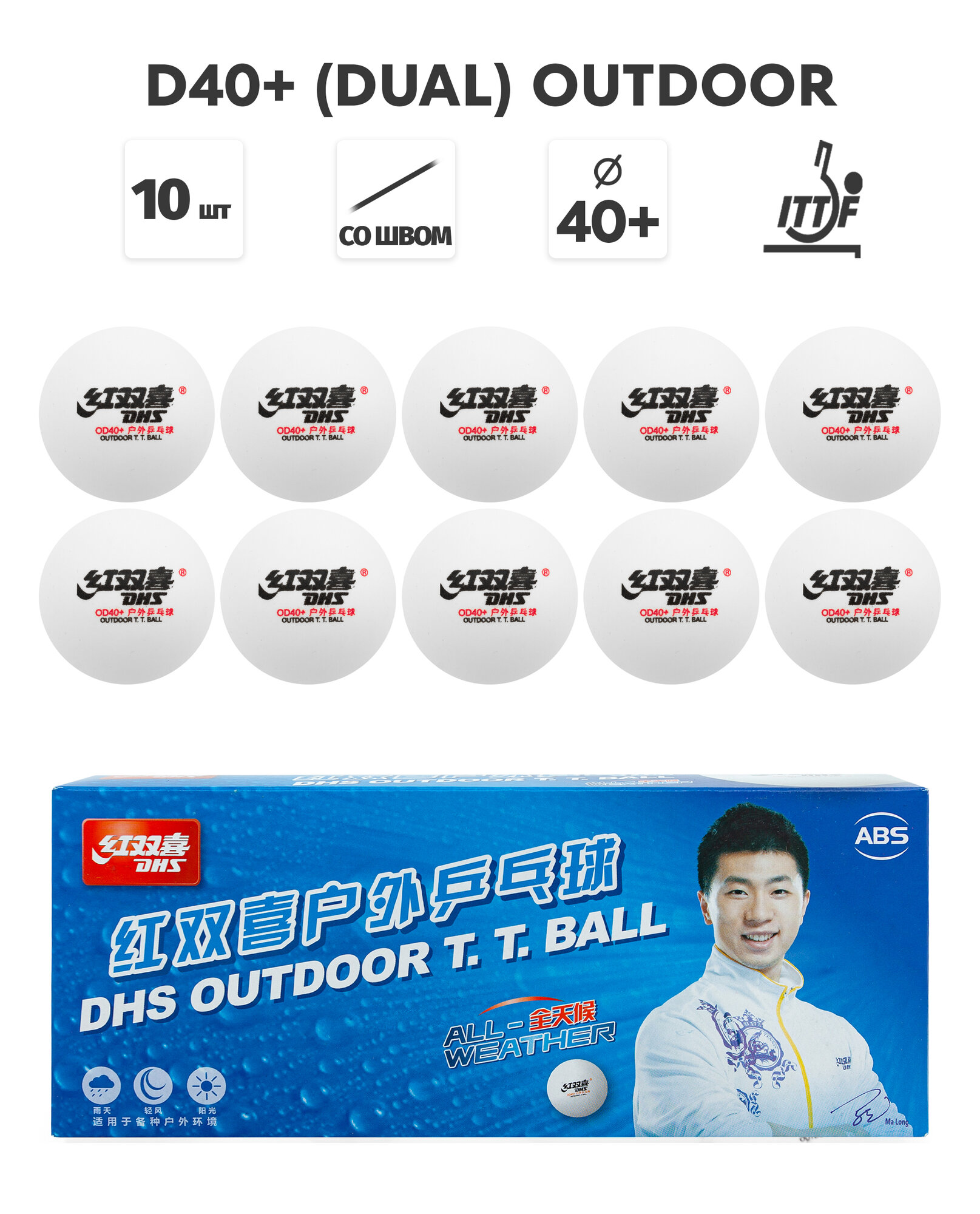 Мячи для настольного тенниса DHS D40+ (DUAL) OUTDOOR бел. 10 шт. информация: