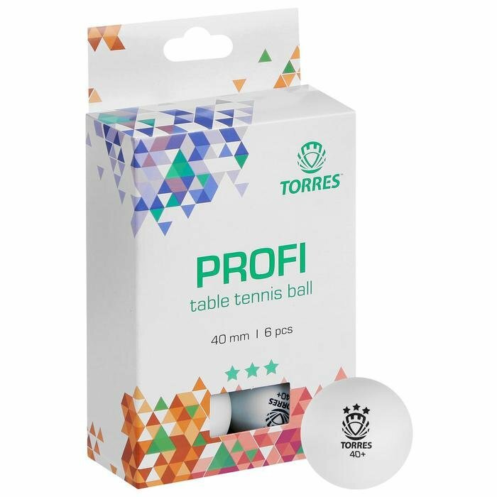 Мяч для настольного тенниса TORRES Profi, 3 звезды, 40 мм, 6 шт., цвет белый (комплект из 3 шт) информация: