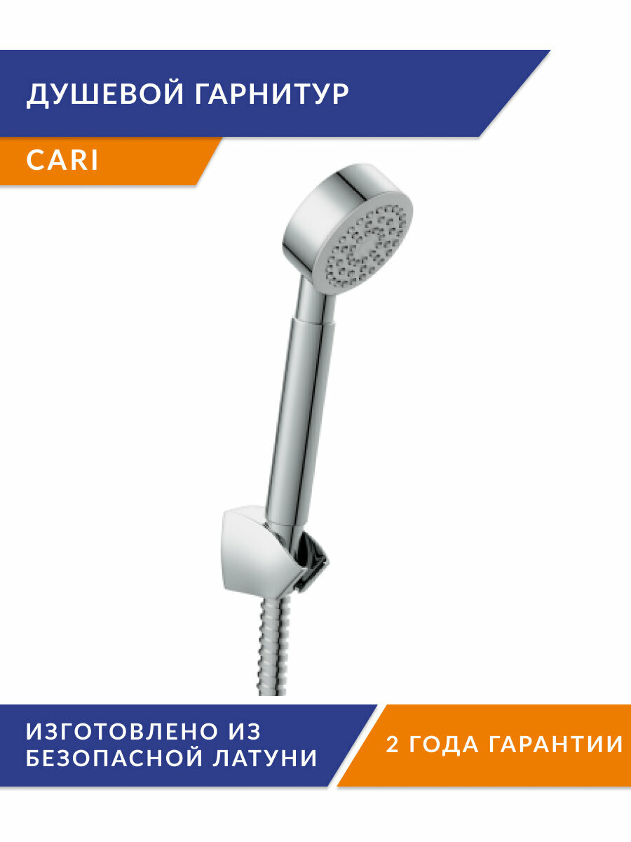 Душевой гарнитур CARI (держатель лейки) 1 режим шланг 150 металл