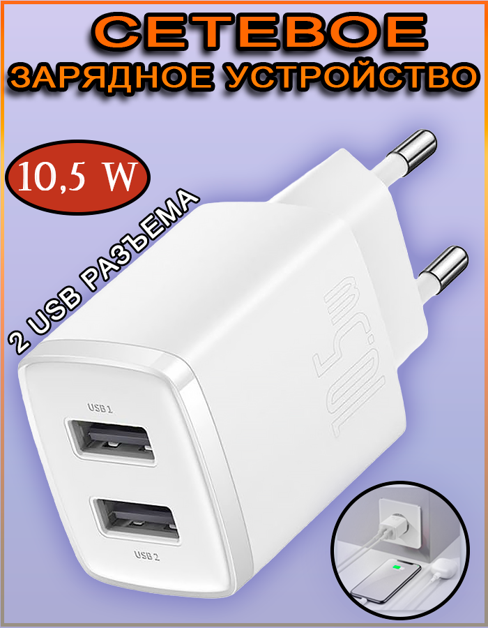 | Дополнительная информация | Сетевое зарядное устройство Baseus Compact Charger 2U 10.5W |