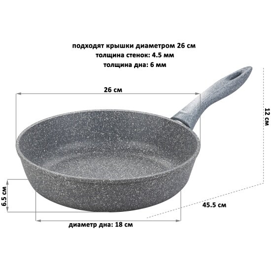 Сковорода глубокая Elan Gallery гармония вкуса Серый мрамор, 26 см информация:
