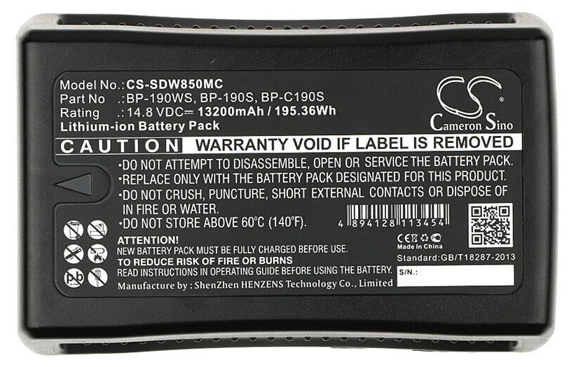 Аккумулятор Cameron Sino для видеокамеры Sony DSR-250P, DSR-600P, DSR-650P, HDW-800P, PDW-850, p/n: BP-190WS, BP-C190S, BP-190S, 13200мАч 15 260 ₽