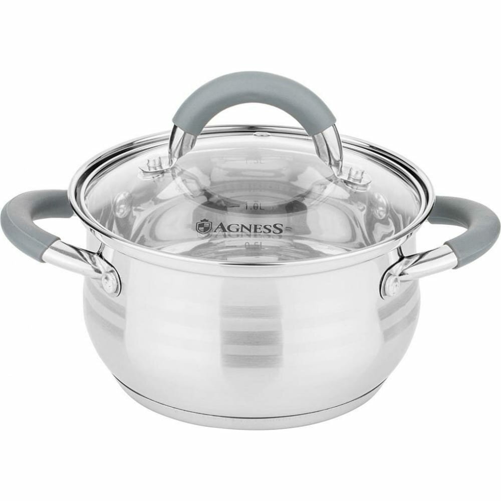 10 цен на Кастрюля 4,6 л нержавеющая сталь со стеклянной крышкой, для индукционных плит Agness Classic, нержавейка 4,6 литра для газовой плиты