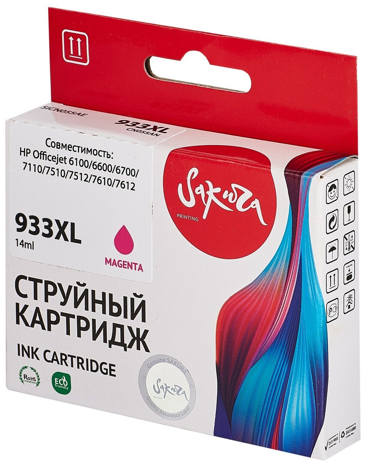 Струйный картридж Sakura Cn055ae (933xl Magenta) для HP, пурпурный, 14 мл., 920 к.