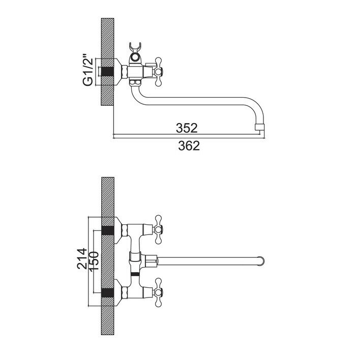 Смеситель на раковину настенный Эверест B46-350 с круглым поворотным изливом, кран-буксы 1/2", хром