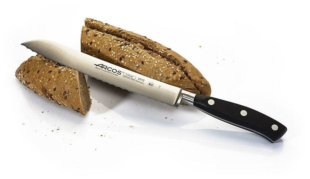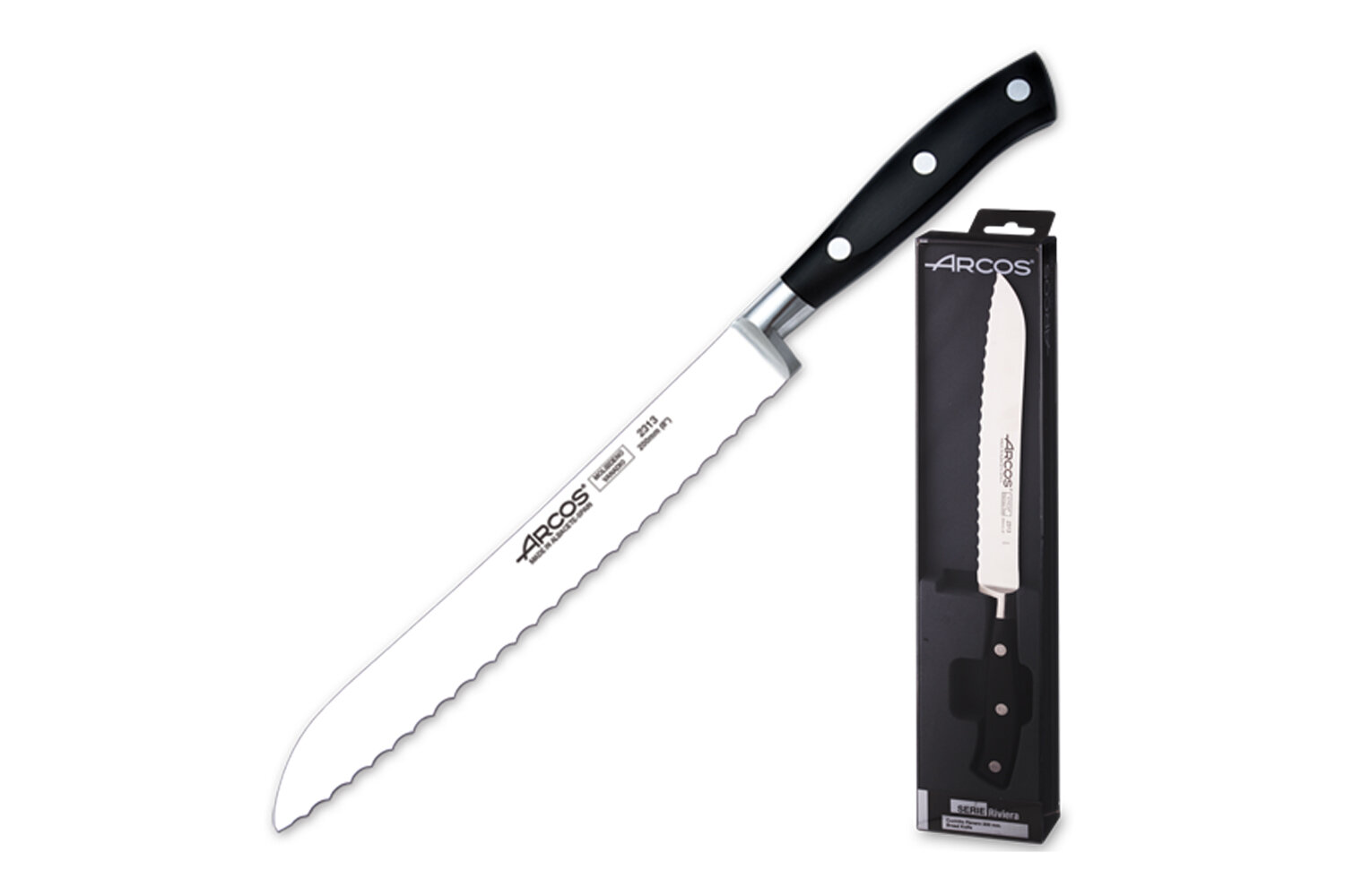 Отзывы на Нож для хлеба из кованой высокоуглеродистой нержавеющей стали, 20 см, пластиковая рукоять, черный, серия Riviera, Arcos, 2313