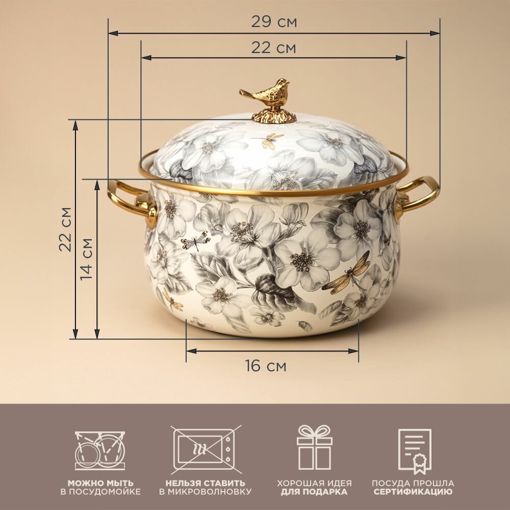 10 цен на Кастрюля Agness эмалированная с крышкой, серия яблоневый сад 4,8л, диа.22см