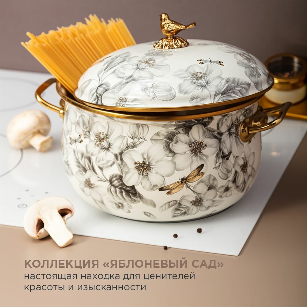 Кастрюля эмалированная с крышкой Яблоневый сад Объем: 2800 мл