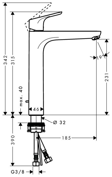 Смеситель для раковины 230, однорычажный, без сливного набора Hansgrohe 31532000, хром информация: