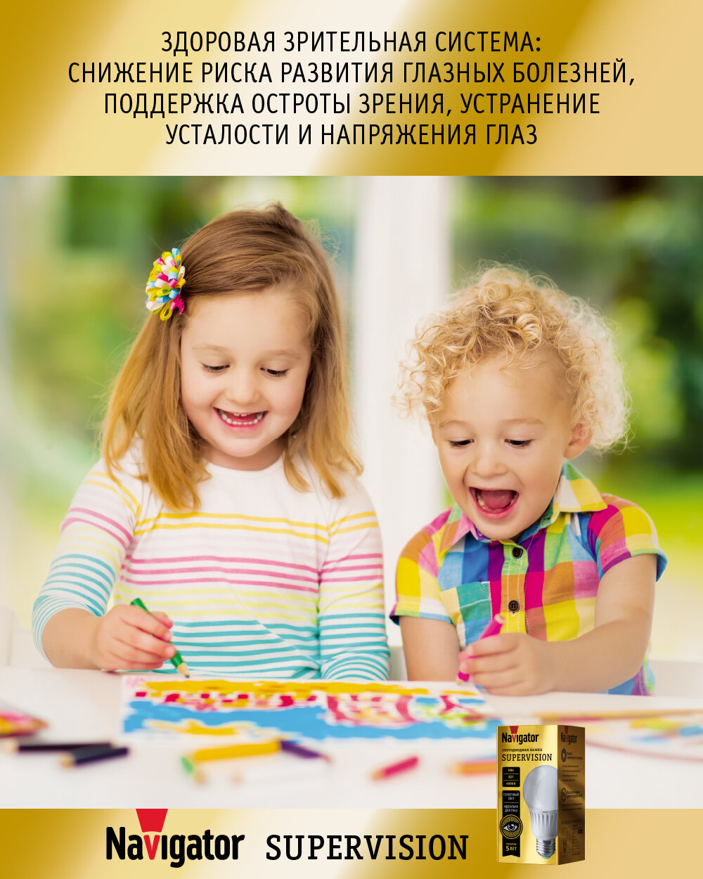 Лампа светодиодная солнечного спектра Navigator 80 549 Supervision Е27, 9 Вт, груша, дневного света 4000К, 1 шт. 548 ₽