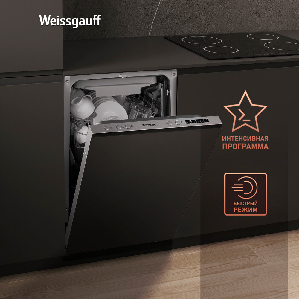 Встраиваемая посудомоечная машина с лучом на полу Weissgauff BDW 4543 D (модификация 2024 года),3 года гарантии, 11 комплектов, 7 программ, полная защита от протечек, автопрограмма Blitz Wash, половинная загрузка, дополнительная сушка информация: