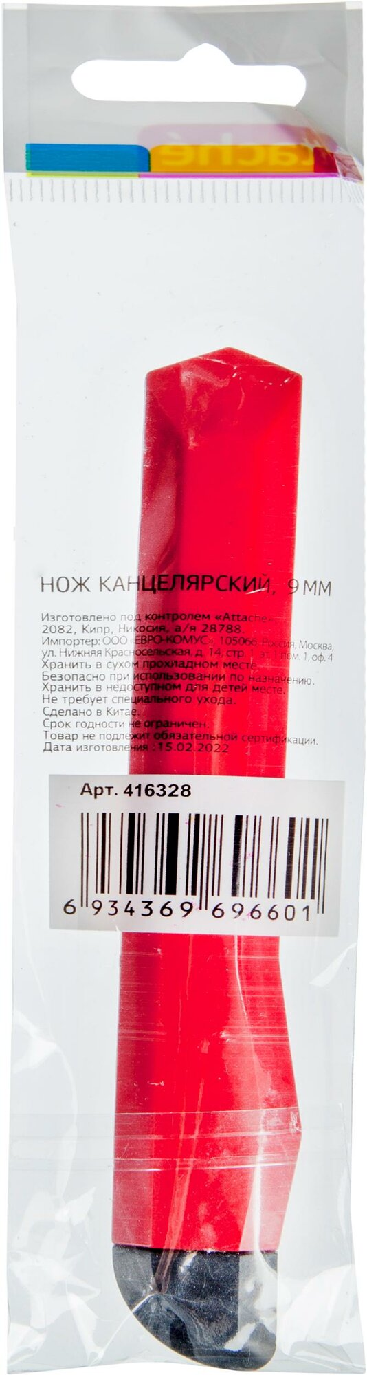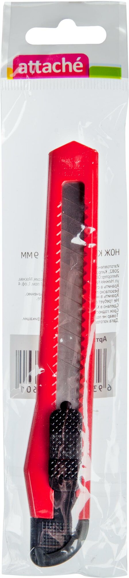 Нож канцелярский Attache лезвие 9 мм, с фиксатором, полибег, красный информация: