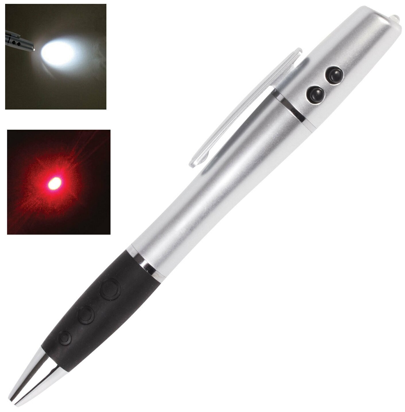 Указка лазерная Beifa 3 в 1, ручка шариковая, фонарь, серебряная, красный лазер