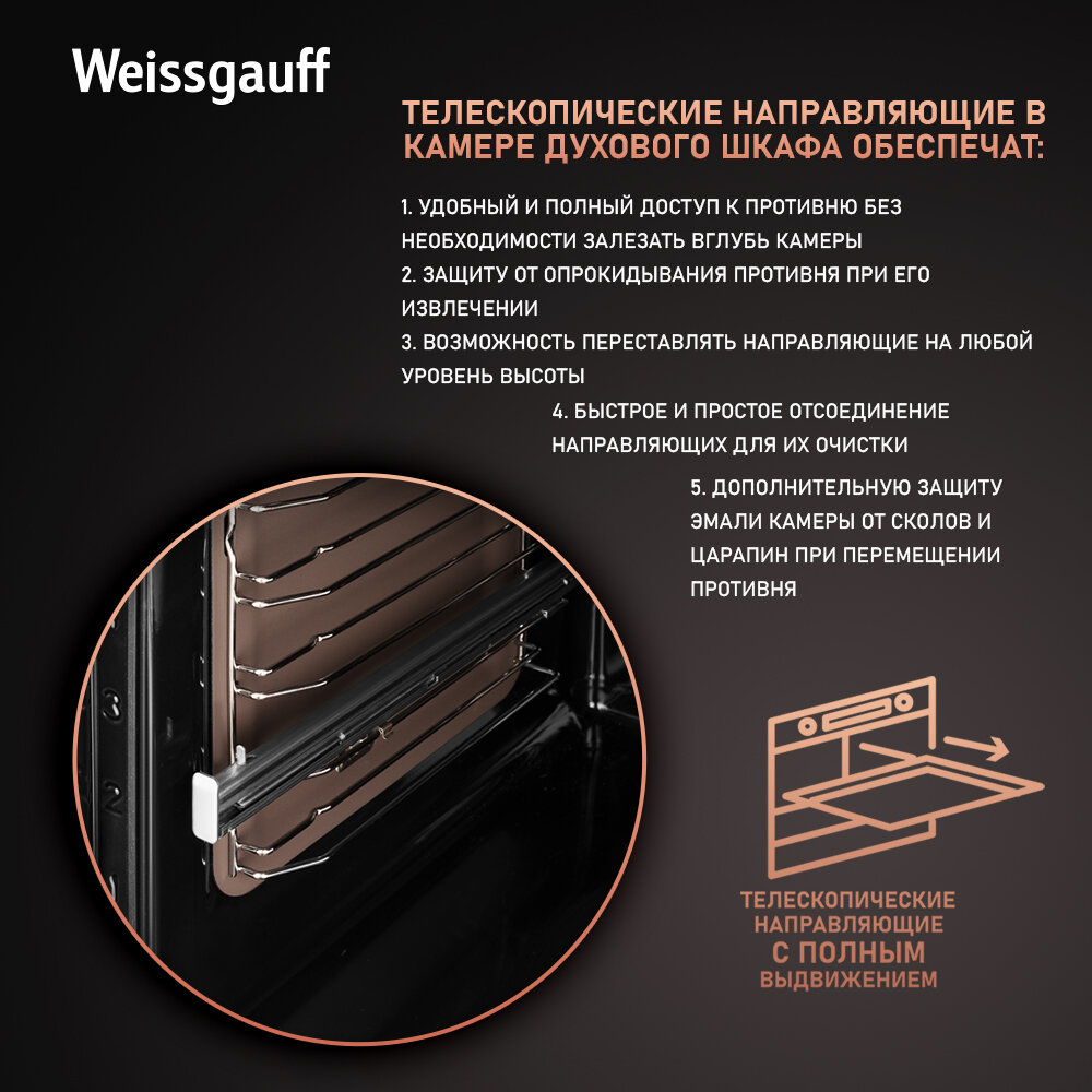 Электрический духовой шкаф Weissgauff EOM 751 PDB Black Edition, объем XXL 72 л, 60 см, 3 года гарантии информация: