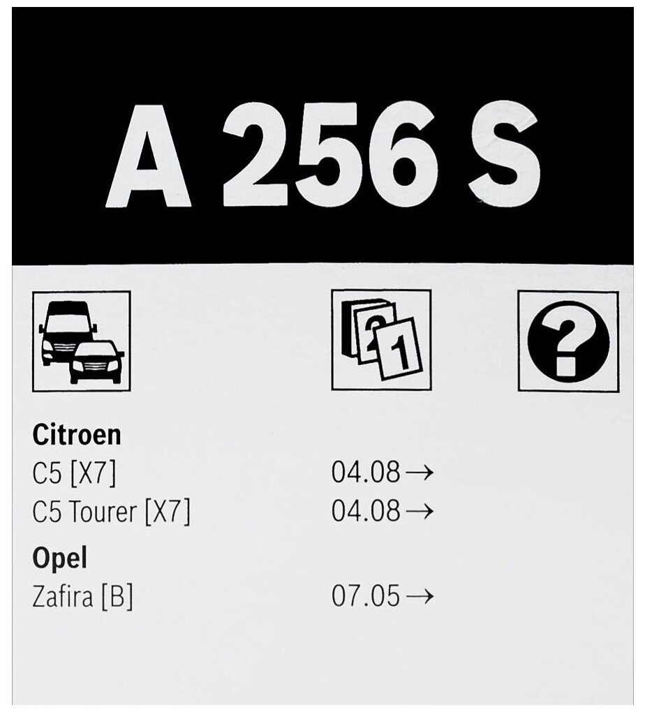 Щетка стеклоочистителя BOSCH 3397007256 A256S комплект информация: