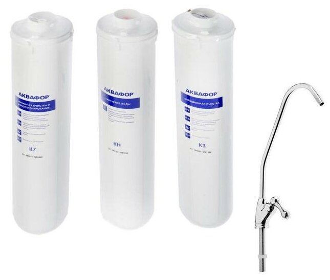 Фильтр для воды Аквафор Кристалл Н с модулями К3-КН-К7 (для жесткой воды), умягчающий, от накипи, с отдельным краном.