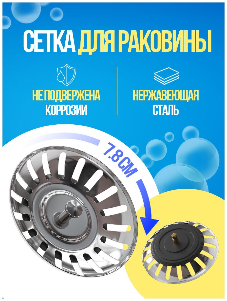 Металлическая сетка фильтр (ситечко решётка) для слива раковины GSMIN SF3 7.8см (Серебристый) информация: