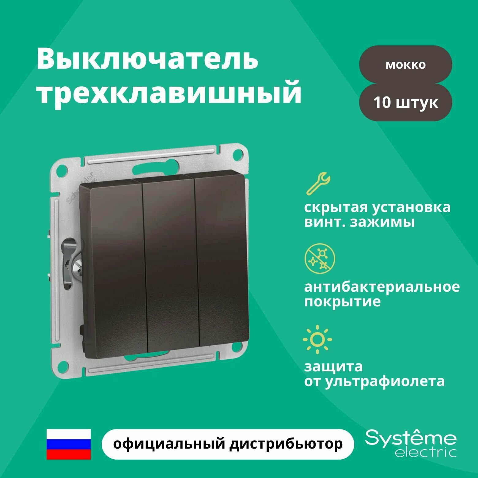 10 цен на Выключатель 3-клавишный ATLASDESIGN, скрытый монтаж, мокко. ATN000631 Schneider Electric (10шт.)