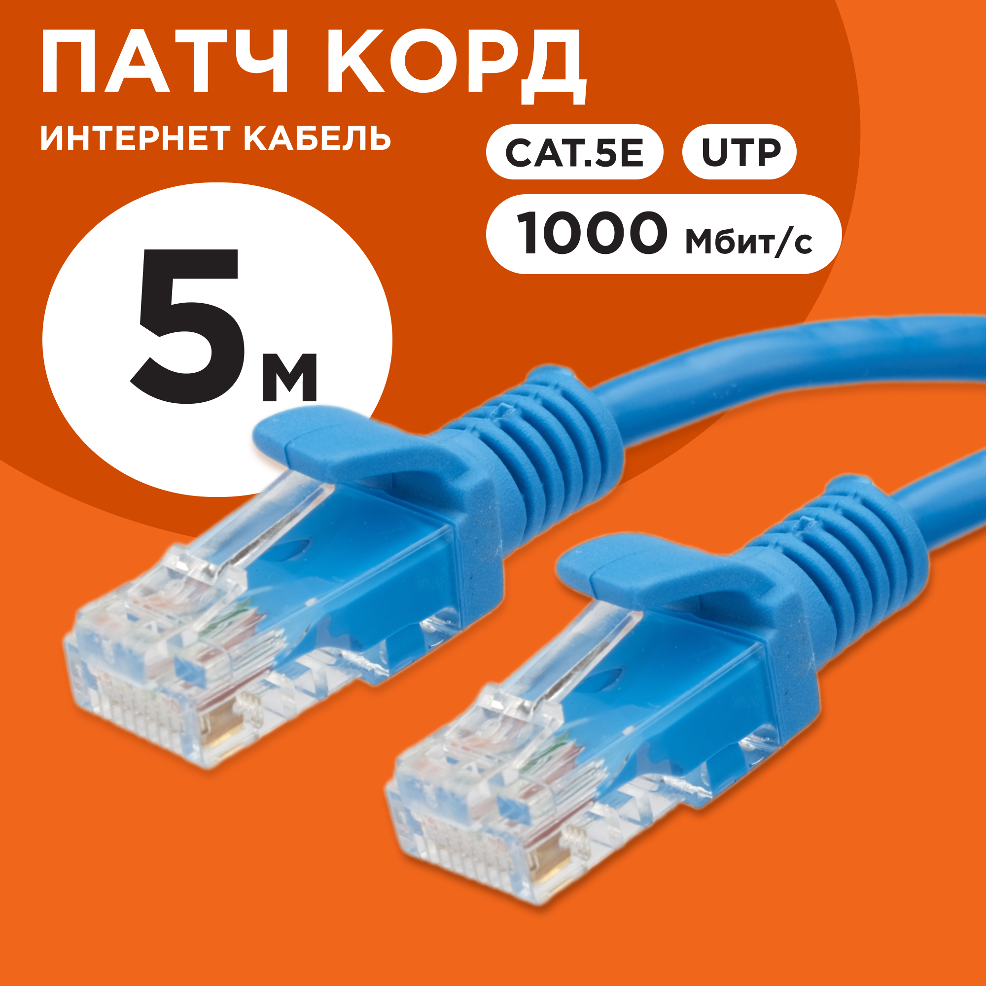 Патч-корд UTP Cablexpert синий категория 5e длина 5 метров PP12-5M/B 239 ₽