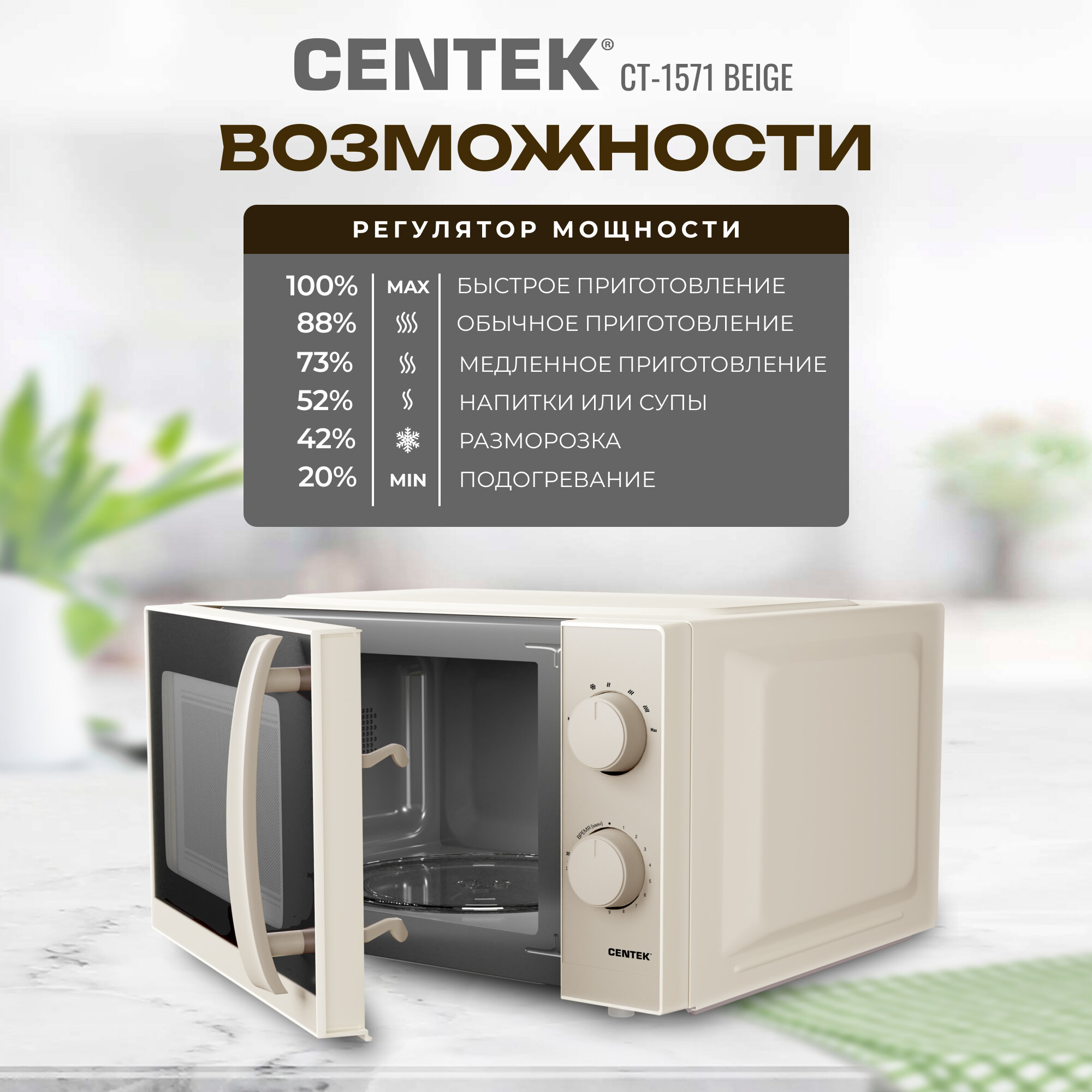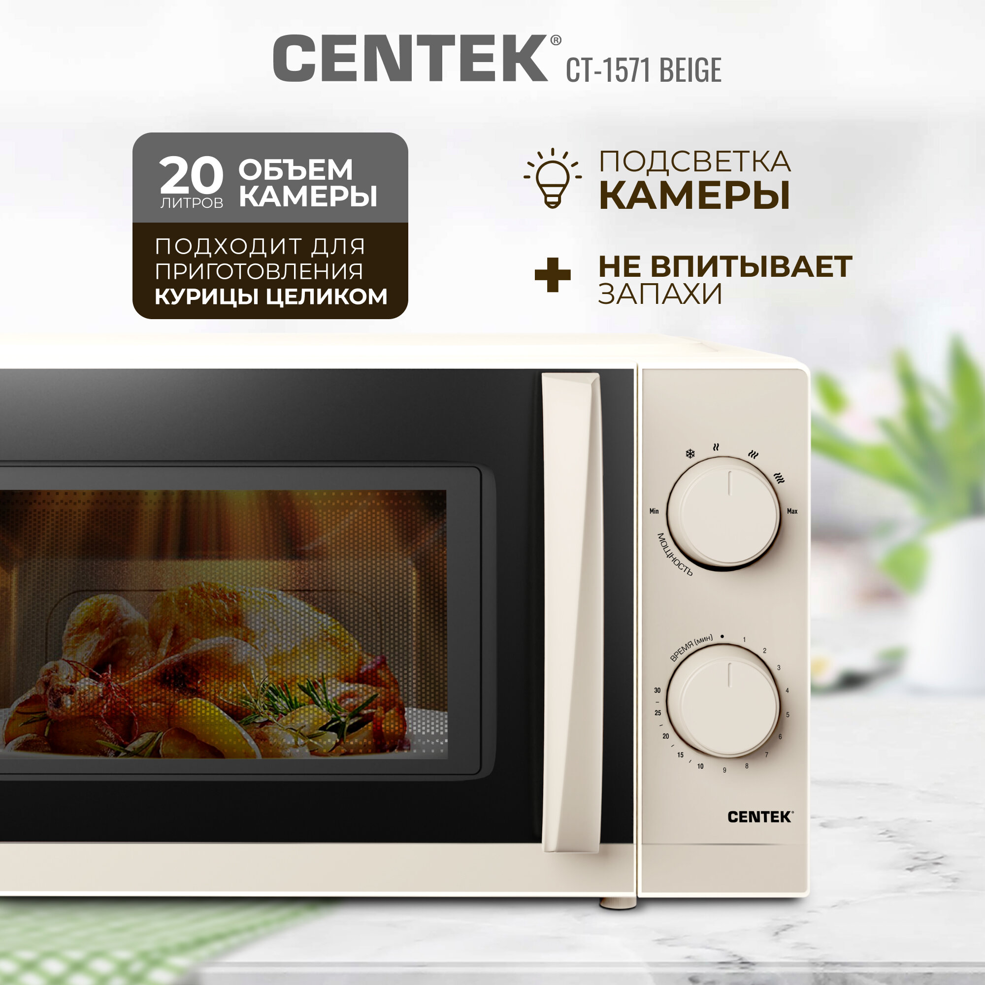 Микроволновая печь CENTEK CT-1571 /беж., 700Вт, 20л информация: