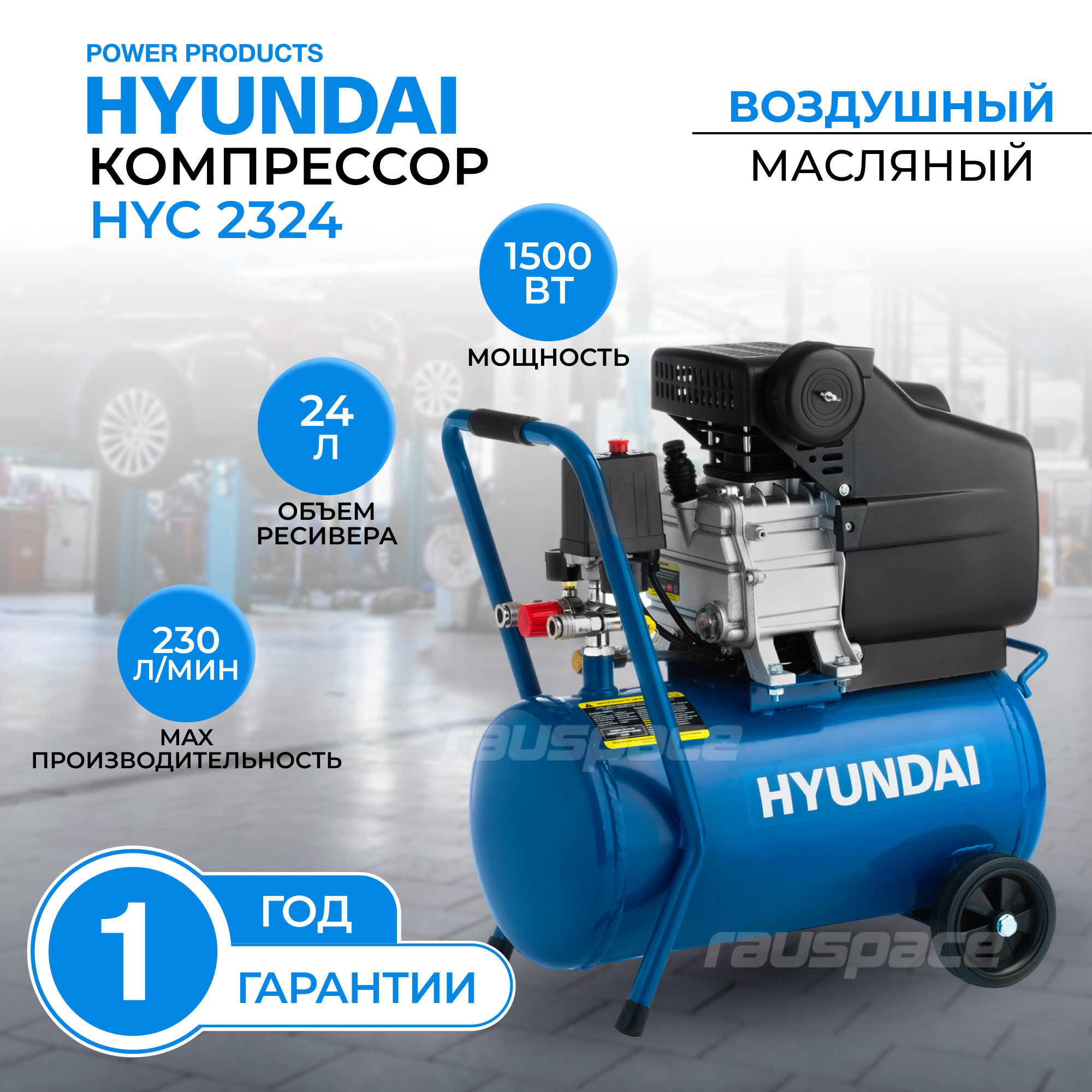 Отзывы на Компрессор поршневой Hyundai HYC 2324 масляный 230л/мин 24л 1500Вт HYC 2324 .