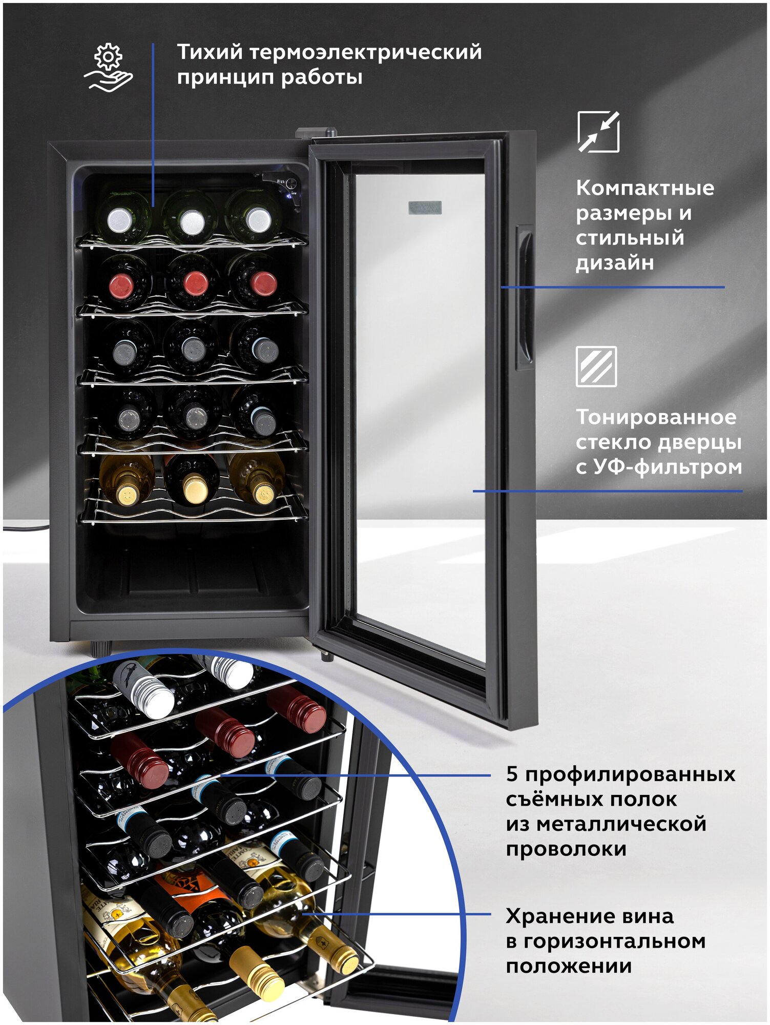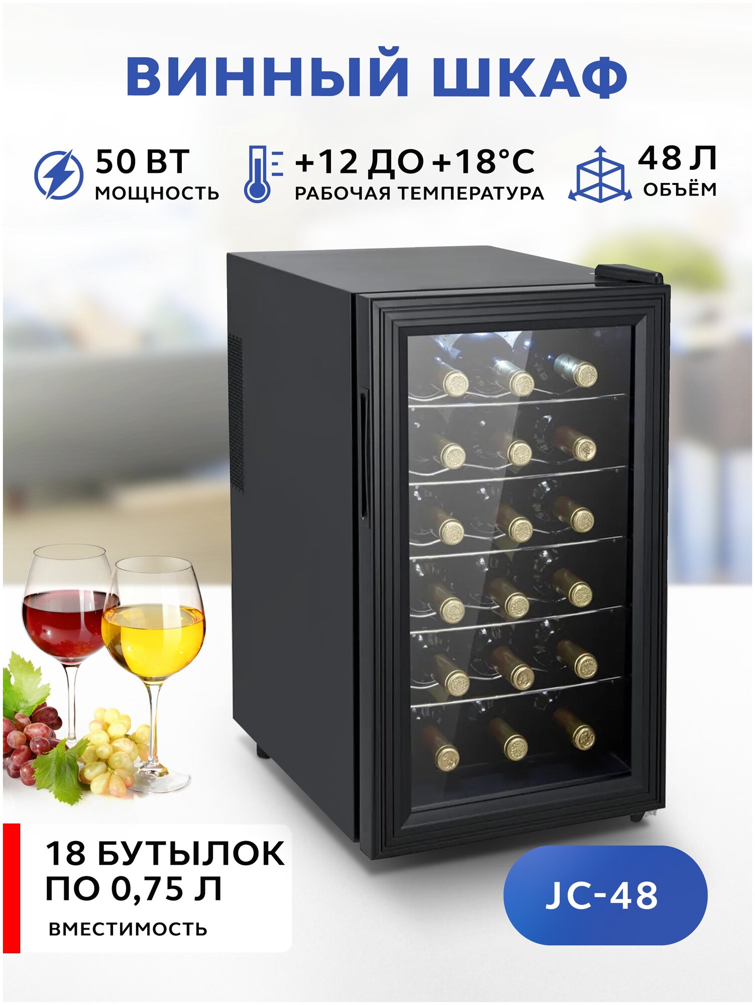 Винный холодильник GASTRORAG JC-48, термоэлектрический бескомпрессорный холодильный шкаф для вина, минибар на 18 бутылок, объем 48 л 22 245 ₽