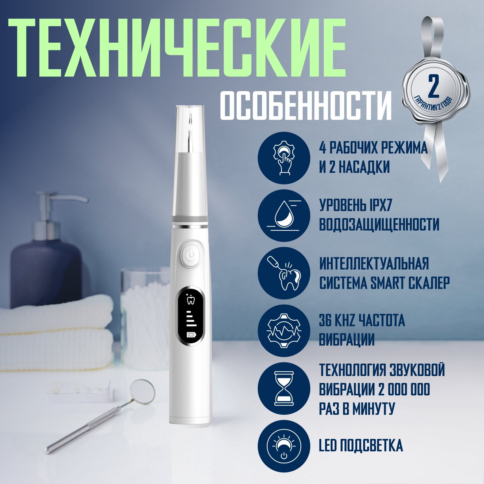 Ультразвуковой скалер для удаления зубного камня My Brilliant Smile 2 насадки информация: