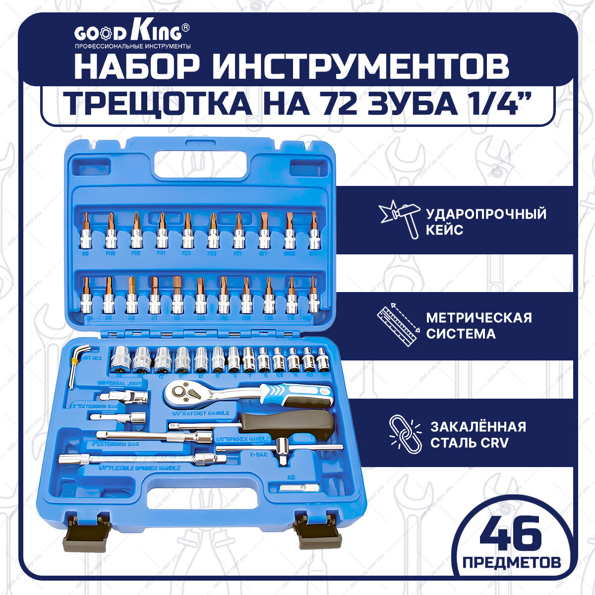 Набор инструментов 46 предметов 1/4" трещотка 72 зубца GOODKING B-10046 биты, торцевые головки для дома, для авто 1 834 ₽
