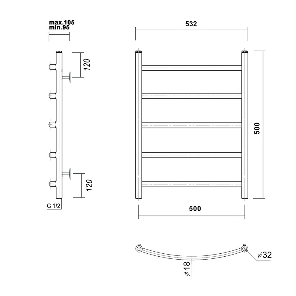 | Дополнительная информация | полотенцесушитель, крепление телескопическое 4 шт, заглушка, кран Маевского, угловой переходник HP-НP 1/2*3/4 2 шт, паспорт на изделие |