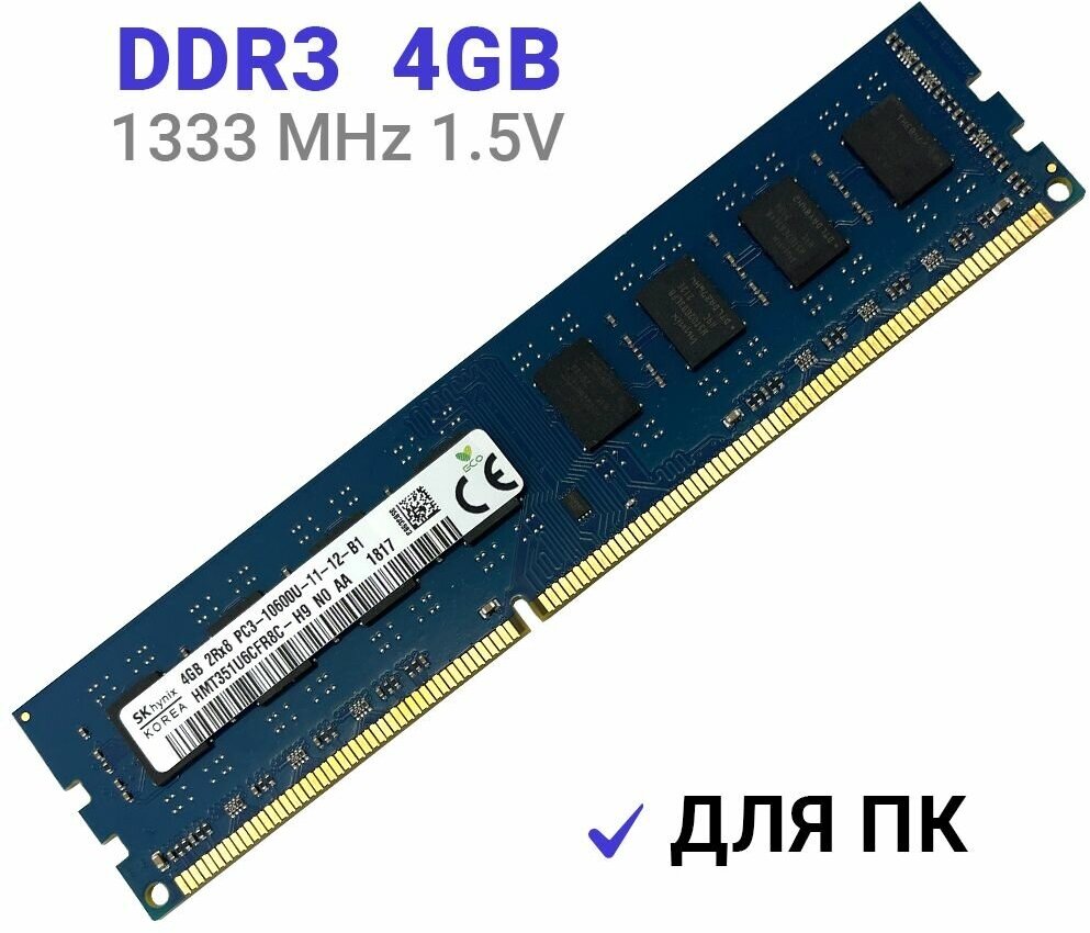 Оперативная память Hynix Basic 4 ГБ DDR3 1333 МГц DIMM CL19 HMT351U6CFR8C-H9 информация: