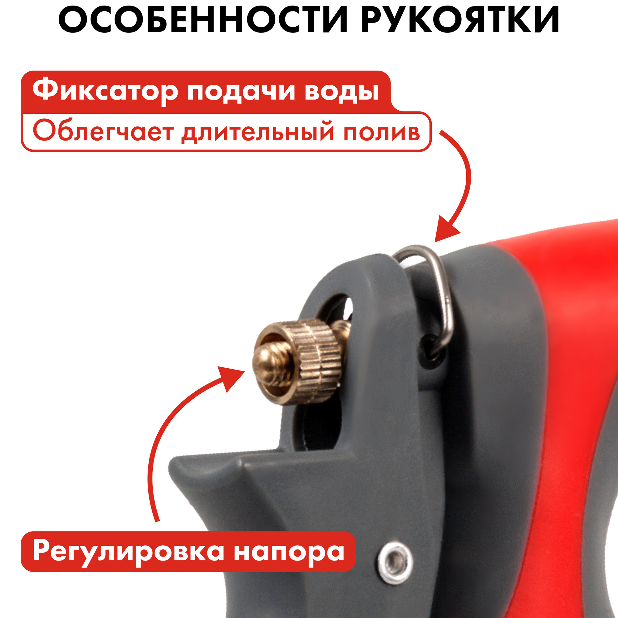 10 цен на Пистолет поливочный QUATTRO ELEMENTI 1-режимный металл + мягкий пластик, регулировка напор