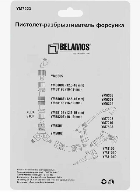 Пистолет-разбрызгиватель воды BELAMOS 7223, ручной, 1 режим информация: