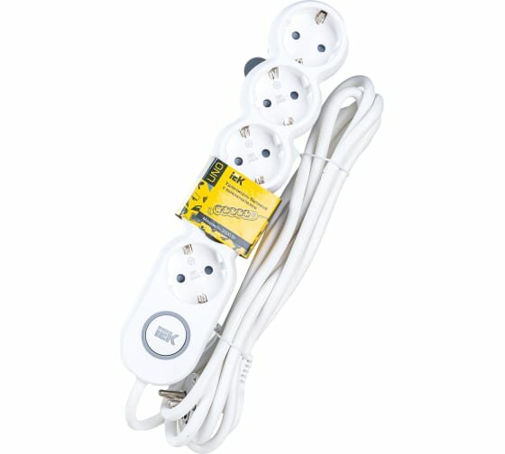 Удлинитель IEK WYP53-16-05-D15-ZK, 5 розеток, 1.5 м, с/з, 16А / 3500 Вт белый