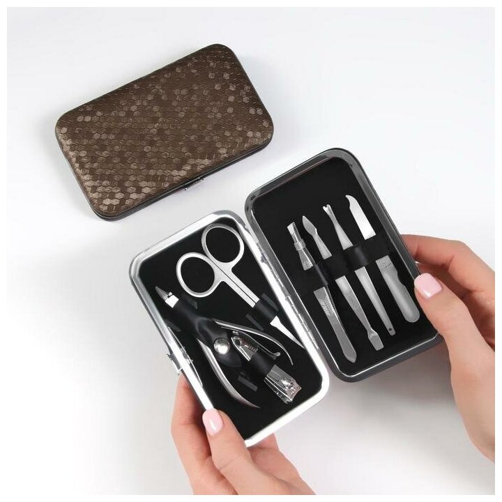 10 цен на Набор маникюрный 7 предметов в футляре цвет коричневый