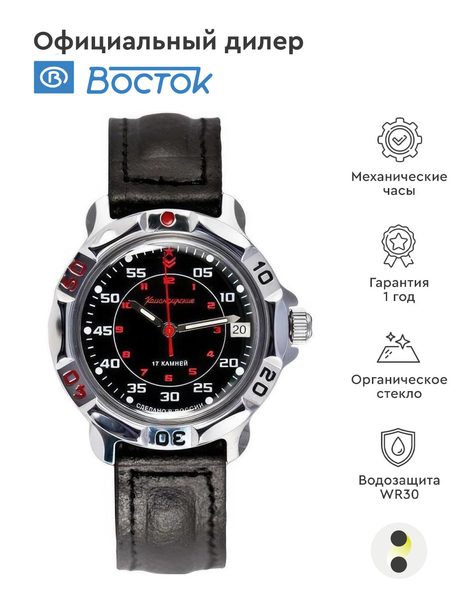 Мужские наручные часы Восток Командирские 811172-classic, натуральная кожа, черный