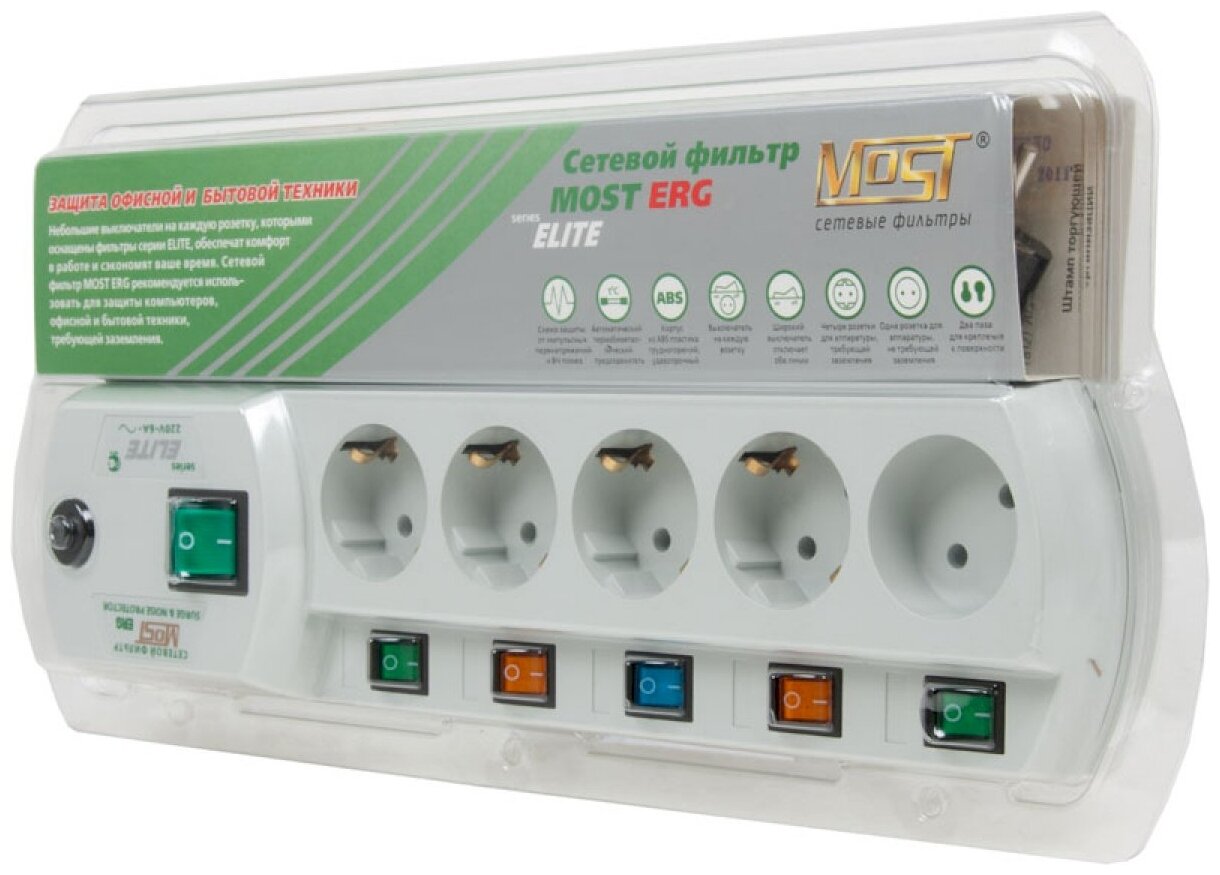 Сетевой фильтр MOST ELITE ERG, 5м 5 розеток