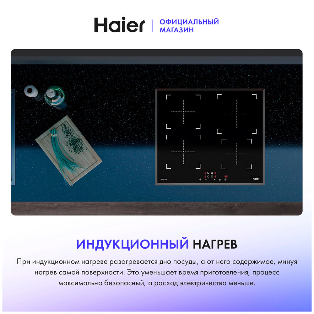 Индукционная варочная панель Haier HHY-Y64NFB, цвет панели черный, цвет рамки серебристый