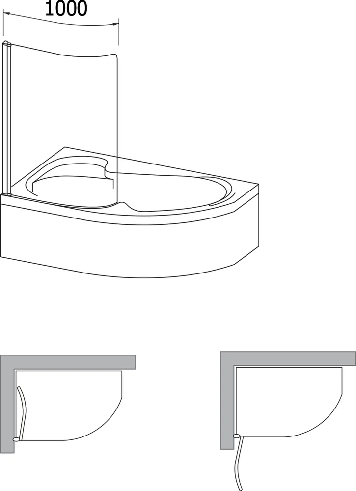 Шторка на ванну Aquanet Practic AE10-B-165H150U-CP, прозрачное стекло