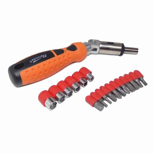 SPARTA Отвертка реверсивная с шарниром, биты, торцевые головки, 18 шт, Sparta, ( 115545 )