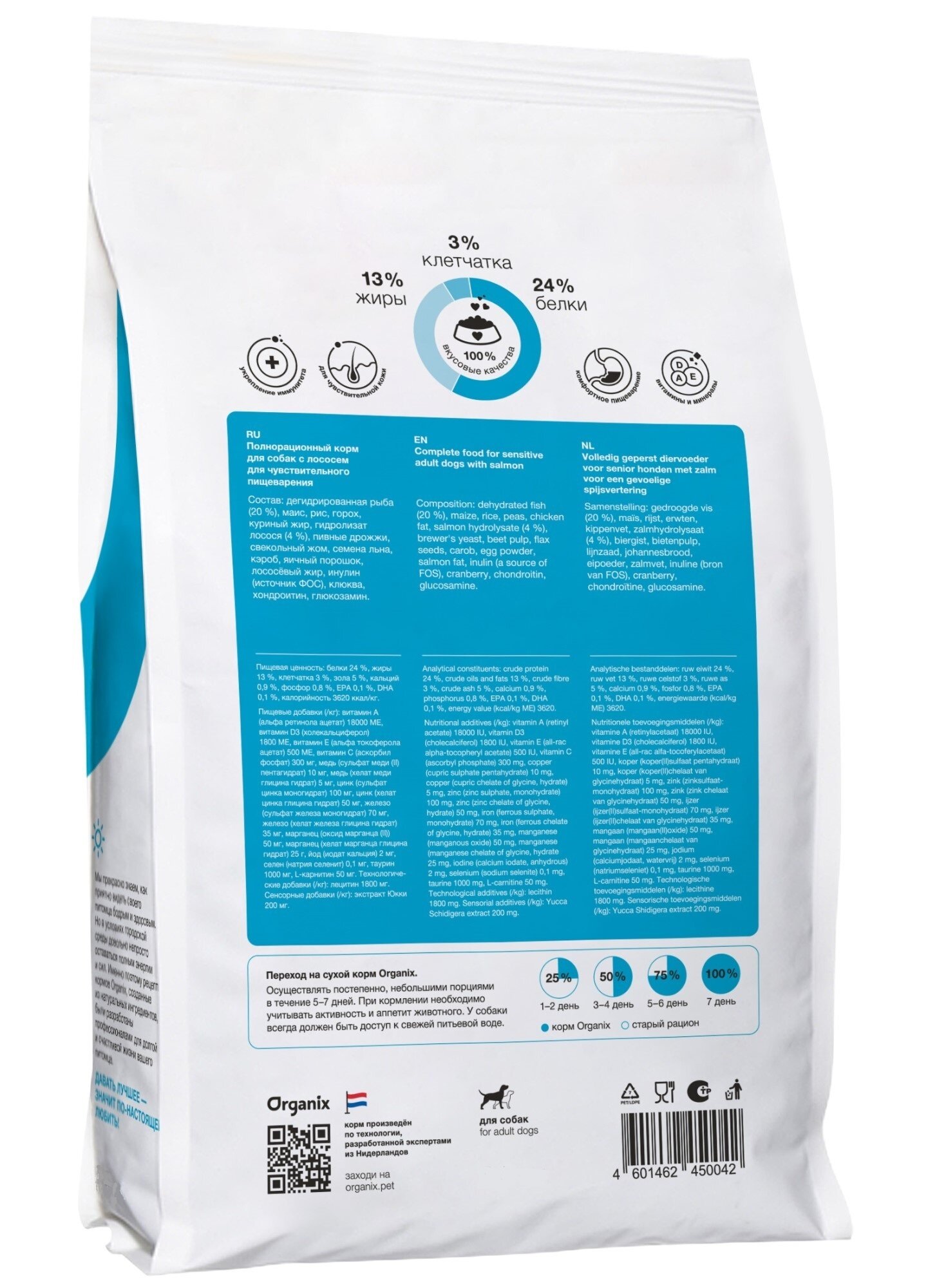 Organix Корм для собак с чувствительным пищеварением, лосось 12 кг информация: