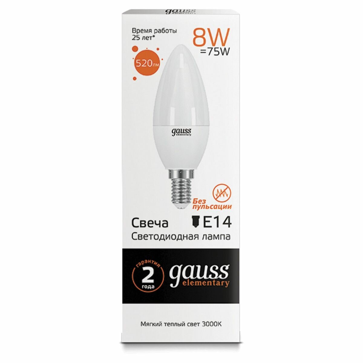 Отзывы на Лампа светодиодная Gauss LED Elementary Свеча 8Вт E14 520Лм 3000K (33118)