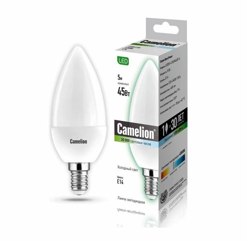 Лампочка светодиодная Camelion LED 5W E14 C35 4500K информация:
