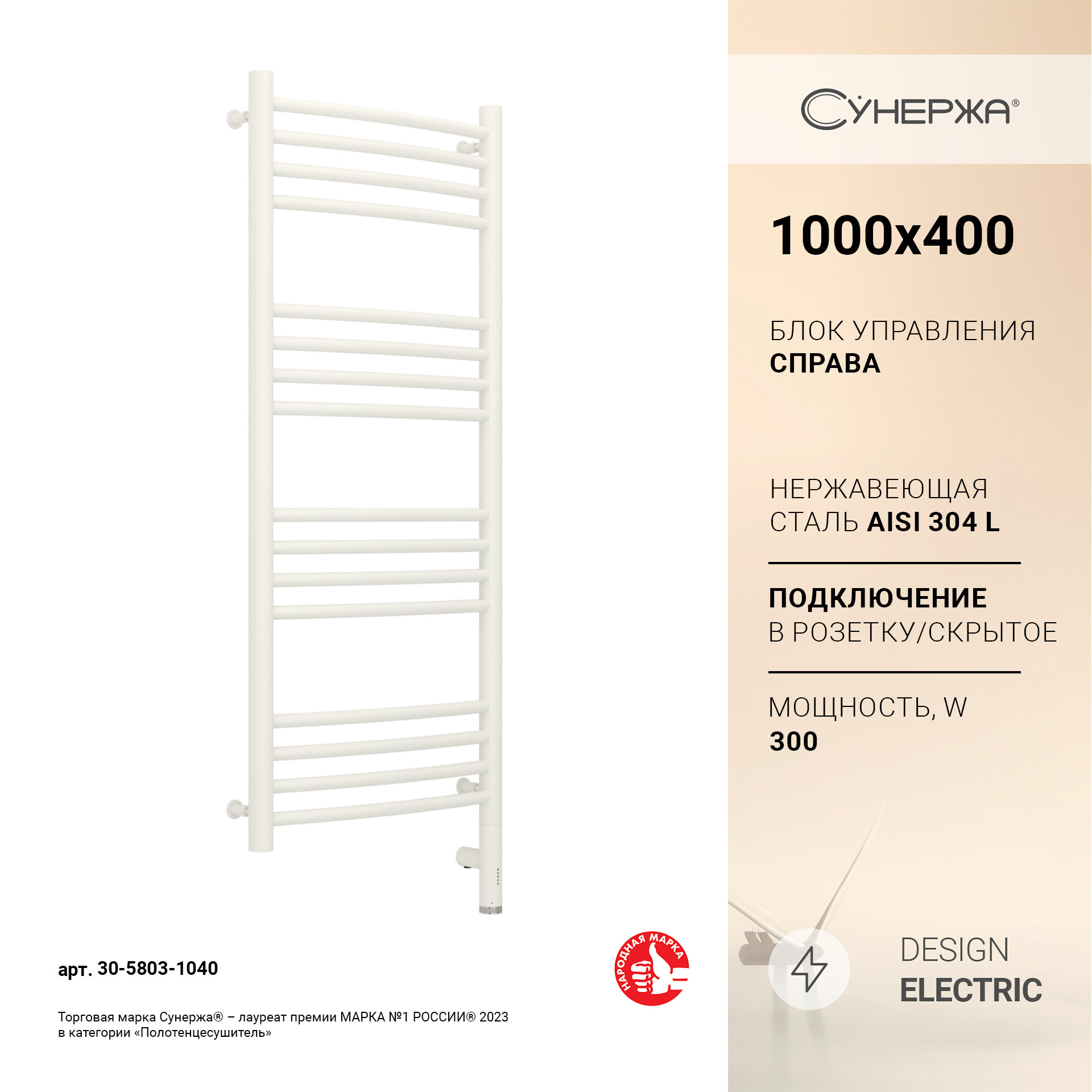 Электрический полотенцесушитель Сунержа Богема 3.0 выгнутая 1000х400 МЭМ правый матовый белый информация: