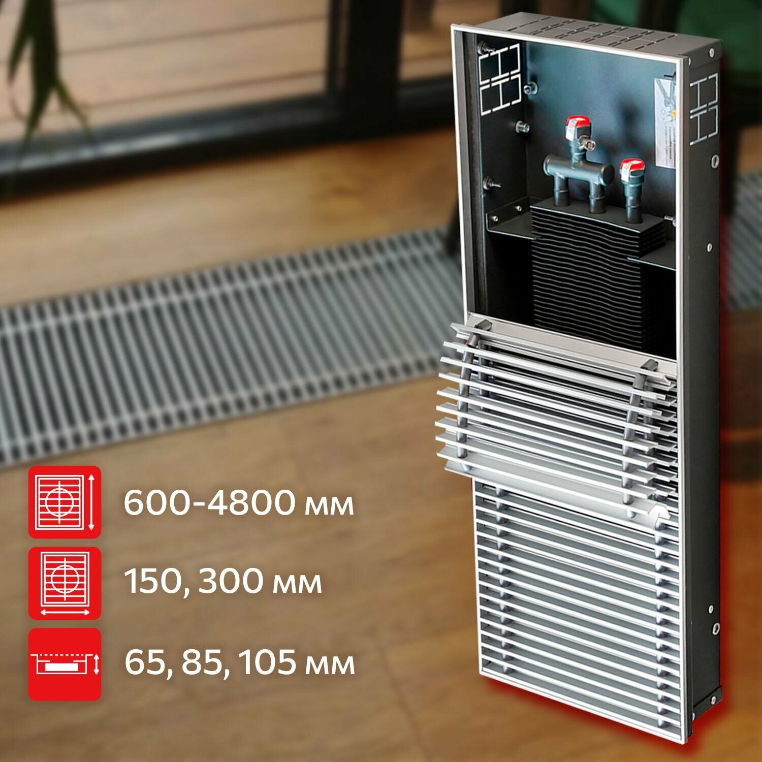 Водяной конвектор с решеткой Techno Power KVZ 150 - 65 - 2300 мм ( встраиваемый / внутрипольный ) с естесственной конвекцией информация: