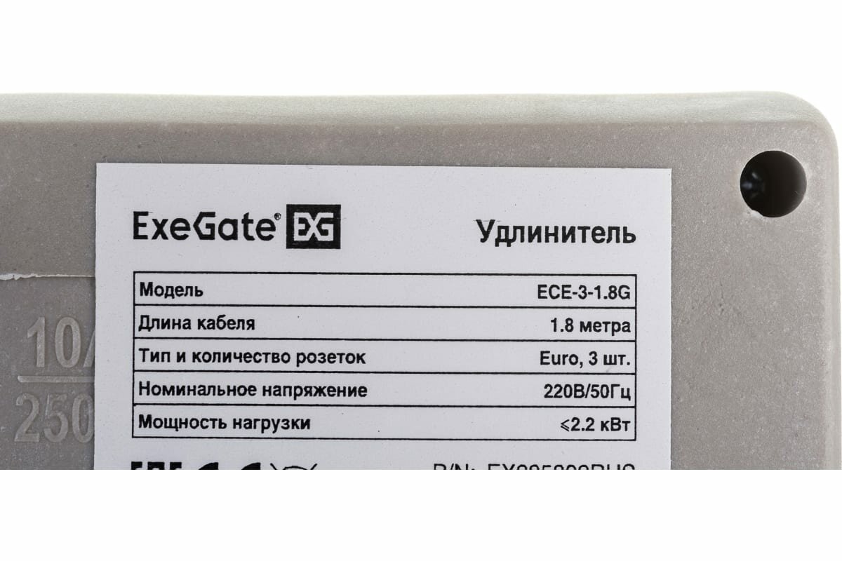 Сетевой удлинитель ExeGate ECE-3-1.8G (EX285802RUS) информация: