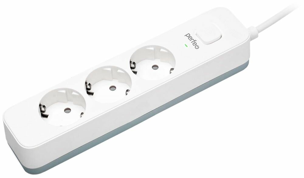 Удлинитель Perfeo POWERMATE (PF-PE-3/5.0-W), 3 розетки, с/з, 10А / 2200 Вт