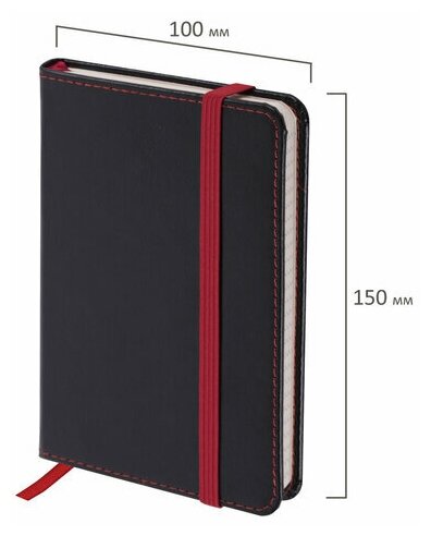 Блокнот малый формат (100x150 мм) А6, BRAUBERG "Office", под кожу, 80 л., клетка, черный, 113325 Комплект : 1 шт .