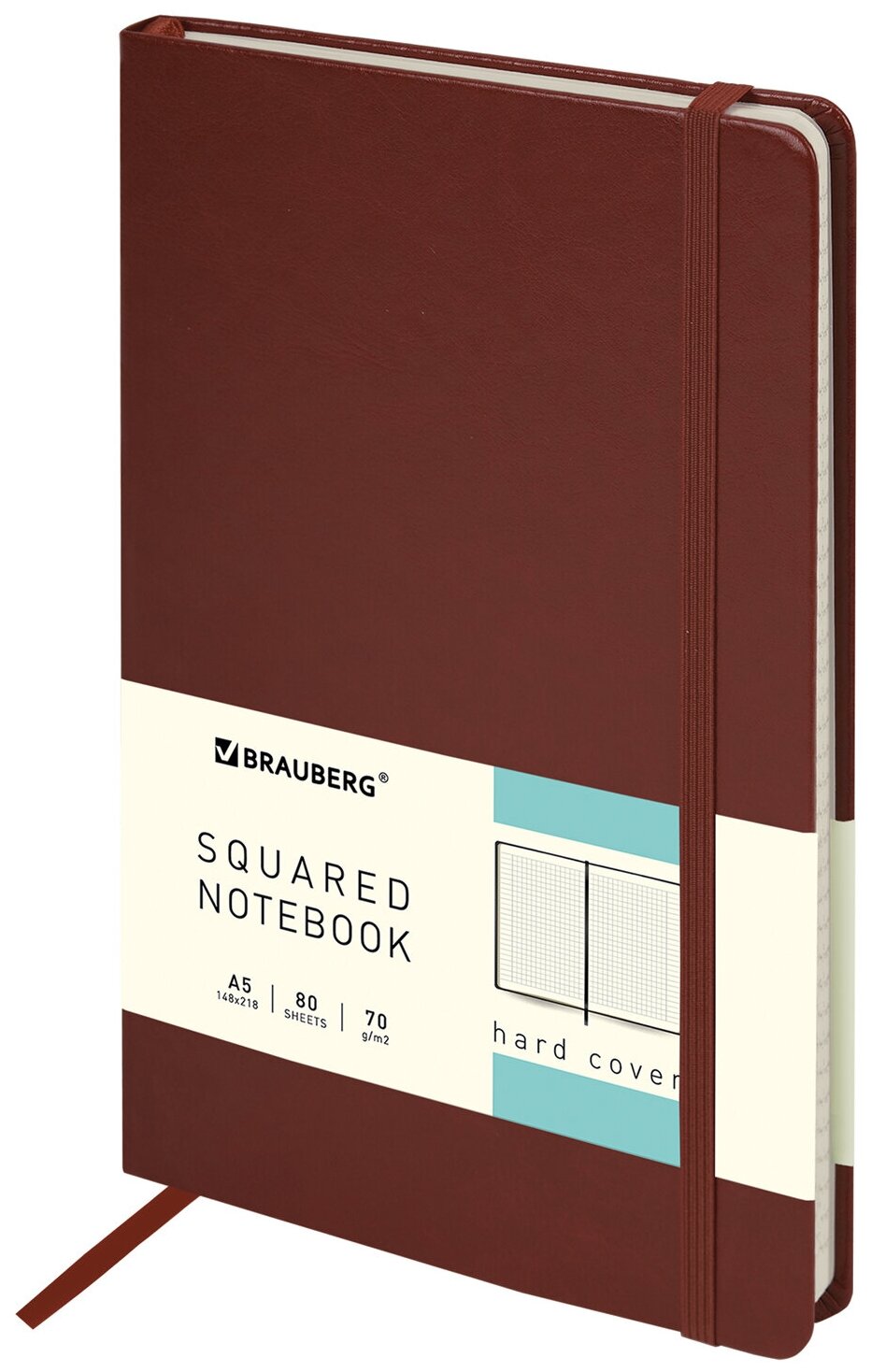 Блокнот А5 (148x218 мм), BRAUBERG "Metropolis Special", под кожу, 80 л., резинка, клетка, коричневый, 111578 (цена за 1 ед.товара)